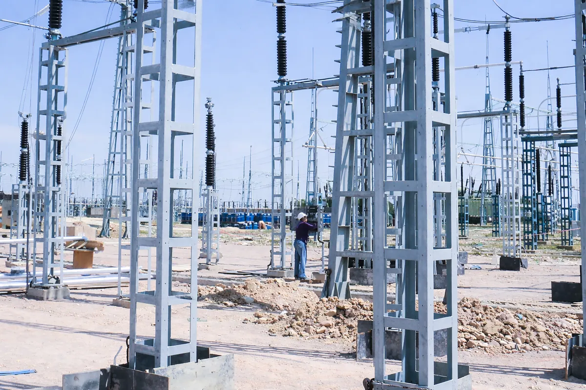 Conception et fabrication de charpentes métalliques pour sous-stations et postes électriques haute tension. Structures galvanisées sur mesure.